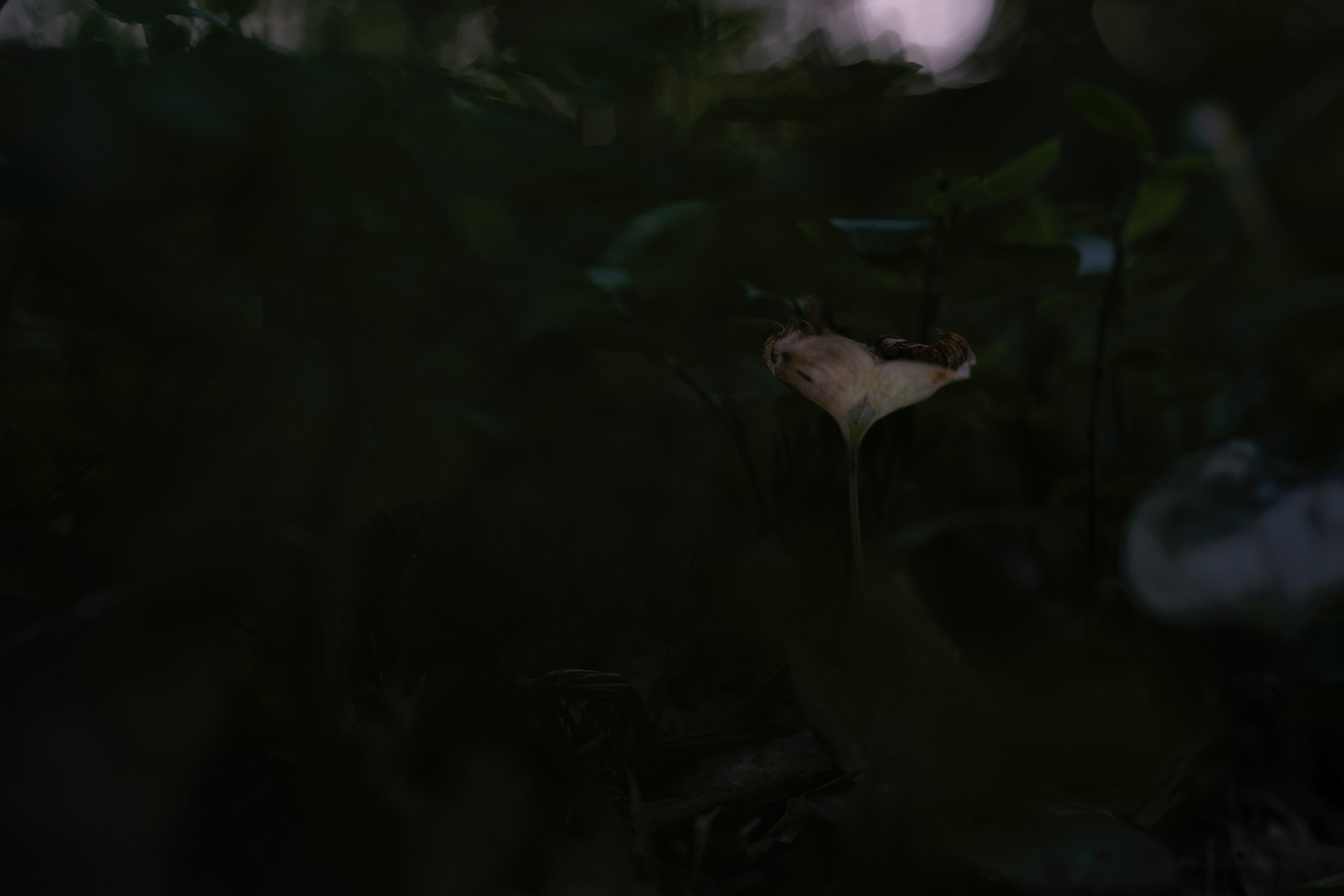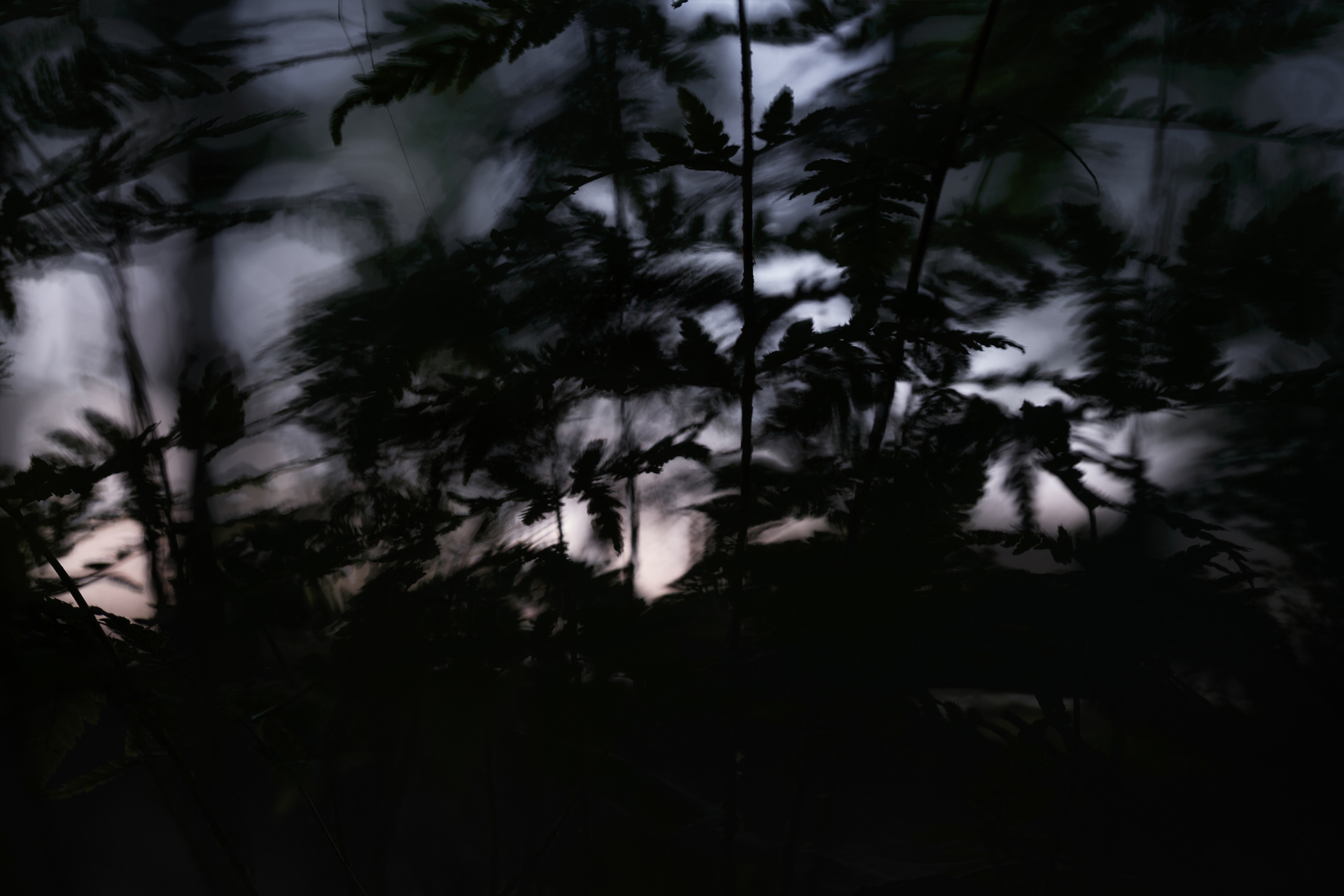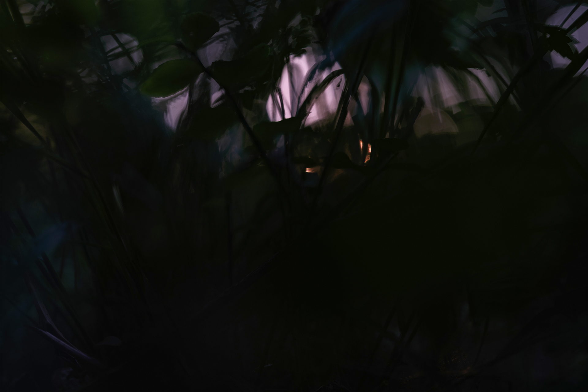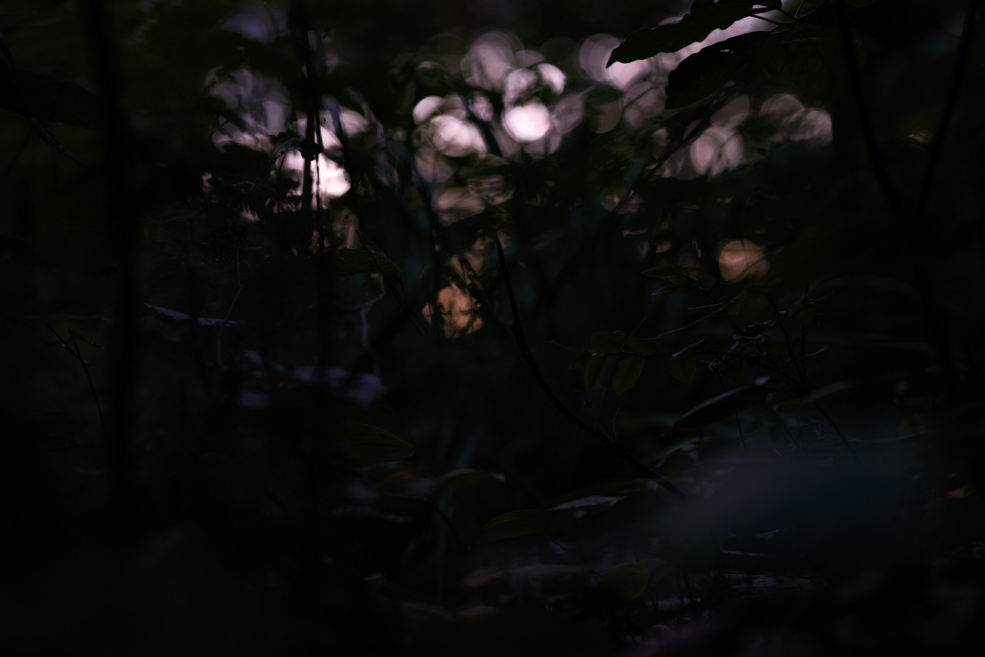 This research took the form of fieldwork – photographing an area limited to a thirty-metre radius around its burrow, near the documented find. The mouse spends most of its life in this area, rarely straying far from its refuge. Photographs taken reveal the animal's perspective: focused on the centre, with expanded yet blurred peripheral vision. The choice of dusk – the rodent's peak activity and, simultaneously, the time of greatest threat from predators – instils in the viewer an atmosphere of constant tension.